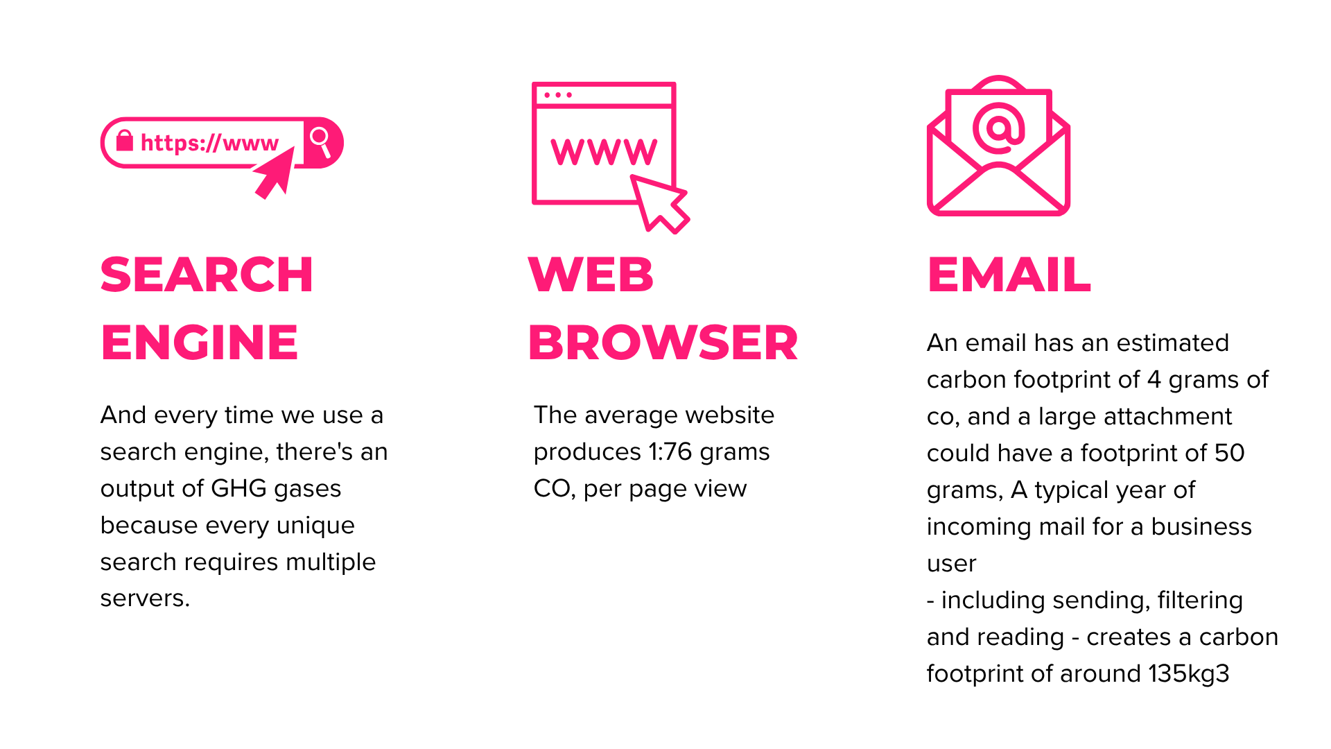 We often overlook small digital actions, but even these can be factors affecting your carbon footprint and can contribute to carbon emissions. So that’s why it’s important that we all try to better understand the hidden carbon cost of everyday online activity, from web browsing to sending emails: