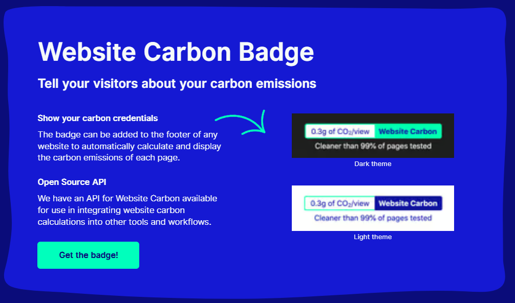 Wholegrain Digital also offers a website carbon badge that you add to the footer of your website: