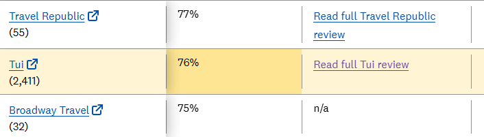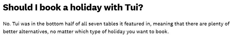 Additionally, clicking the “Read full TUI review” link on that highly-sourced page returns us an article with this extremely negative snippet of text: