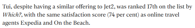 If I were Jet2Holidays, I’d probably be happy with the response given. However, for TUI, I’m not sure that “broad affordability” and “robust digital booking options” are the things I want to be called out as key selling points of my business.